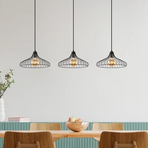 In de eetkamer moet de zwarte hanglamp zo worden opgehangen dat er ongeveer 80 cm of meer ruimte is tussen het tafelblad en de onderkant van de kap. Hierdoor kun je de ander moeiteloos in de ogen kijken en loop je niet het risico dat je je hoofd stoot bij het opstaan en gaan zitten.