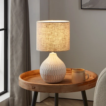 Hoewel een stoffen kap het licht al aangenaam zacht maakt, hebben veel tafellampen ook een geïntegreerde dimmer om de helderheid op elk moment aan je eigen voorkeuren aan te passen. Of de lamp een trekschakelaar of een toetsdimmer heeft, hangt af van het product.