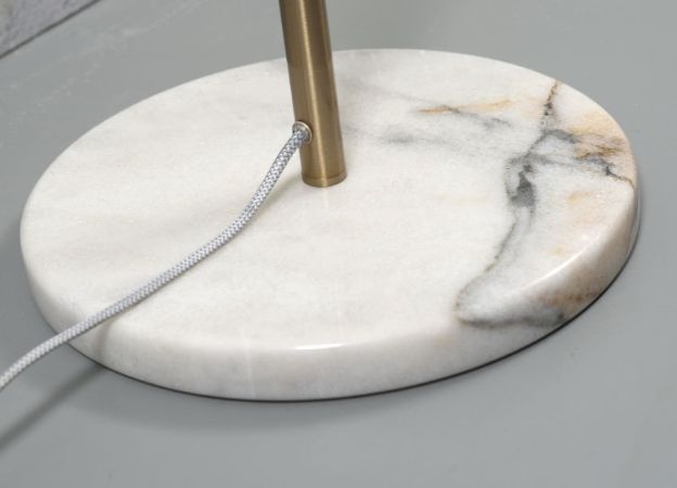 Als relatief zwaar materiaal is marmer voorbestemd voor de basis van de armatuur. Als elegante basis biedt het een podium voor andere materialen die gebruikt zijn in het frame en de kap. Van stoffen kappen en metalen frames tot opaalglazen bollen of rookglazen bollen, er zijn veel verschillende combinaties mogelijk.