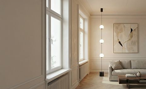 In minimalistische interieurs zetten hanglampen met een heldere vorm, hoogwaardige materialen en subtiele kleuren stijlvolle accenten. Boven de eettafel, het aanrecht of de salontafel zorgen ze voor aangenaam licht en passen ze harmonieus in een minimalistisch woonconcept. Ze benadrukken de stijl zonder op de voorgrond te treden en creëren een rustige, huiselijke sfeer.