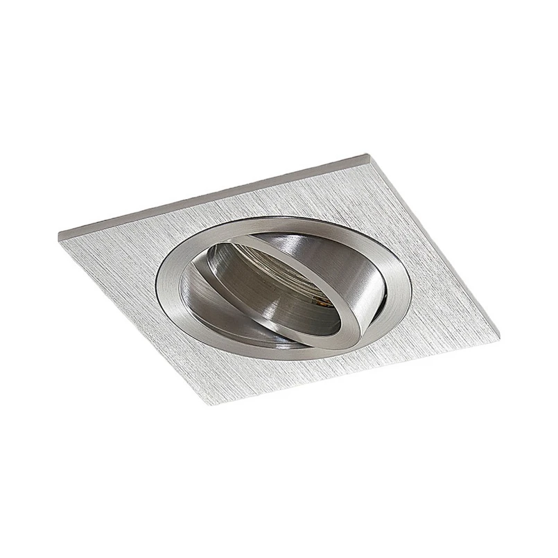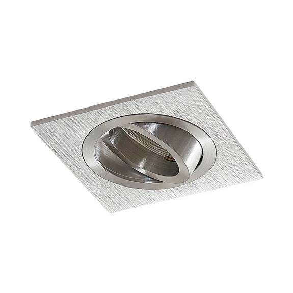 Hoekige inbouwlamp Sophia van aluminium De hoekige behuizing van deze inbouwlamp wordt in het midden gecompleteerd door een rond lichtbronelement, dat beweegbaar is in plaats van vast. Het kan tot 25° worden gekanteld, waardoor de lichtrichting beter kan worden aangepast. Met zijn geborsteld aluminium oppervlak past de Sophia inbouwlamp in vele stijlen.