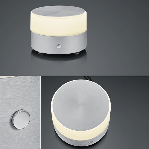 Button LED tafellamp met touch dimmer en schemerlamp Gemaakt van geanodiseerd metaal en mat wit Glas, is de cilindrisch vormgegeven Button LED tafellamp net zo geschikt voor gebruik in de woonkamer als voor gebruik als bedlamp. De voet van de lamp is voorzien van drie voetjes met een vilten kussentje om de lamp tegen krassen te beschermen, waar ook de kabel omheen gewikkeld kan worden. Die LED tafellamp is uitgerust met een touch dimmer en de dim naar warm functie. Als het licht gedimd wordt, verandert ook de lichtkleur; hoe verder gedimd wordt, hoe warmer het licht wordt (2.700 K - 2.200 K), dat ook gekenmerkt wordt door een zeer goede kleurweergave met een index van Ra < 90. De glazen diffuser wordt aan de bovenkant afgedekt door een metalen schijf, zodat het armatuur zijn licht rondom uitstraalt. De LED tafellamp Button is een kwaliteitsproduct van BANKAMP, een fabrikant van armaturen uit Sauerland, Duitsland, die werd opgericht in 1947. BANKAMP armaturen worden gekenmerkt door hun hoge kwaliteit. Das produceert kwaliteitslampen in Duitsland van hoogwaardige materialen, die zeer hoogwaardig zijn afgewerkt en indruk maken met hun innovatieve functionaliteit en decoratief ontwerp.