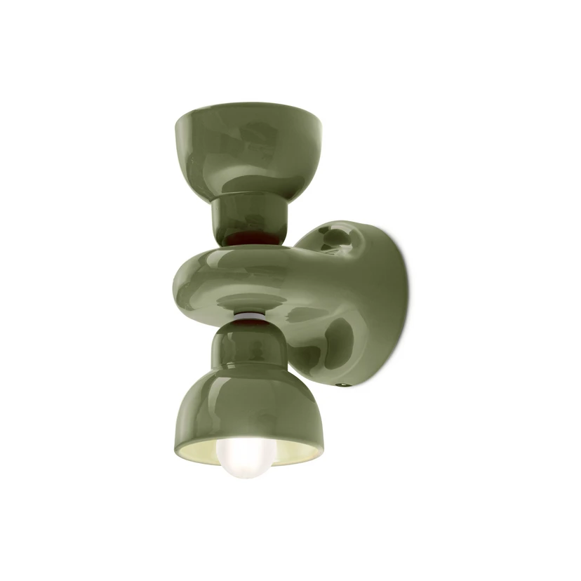 Berimbau wandlamp 2-lamps van keramiek Berimbau is een sieraad van Italiaanse makelij dat in elke kamer opvalt dankzij haar decoratieve look en het licht dat ze naar boven en beneden uitstraalt. De 2-lamps wandlamp Berimbau is volledig gemaakt van keramiek: Terwijl het grootste deel van het armatuur gekleurd is, is de binnenkant van de kappen wit gehouden voor een optimale lichtreflectie - extern dimbaar