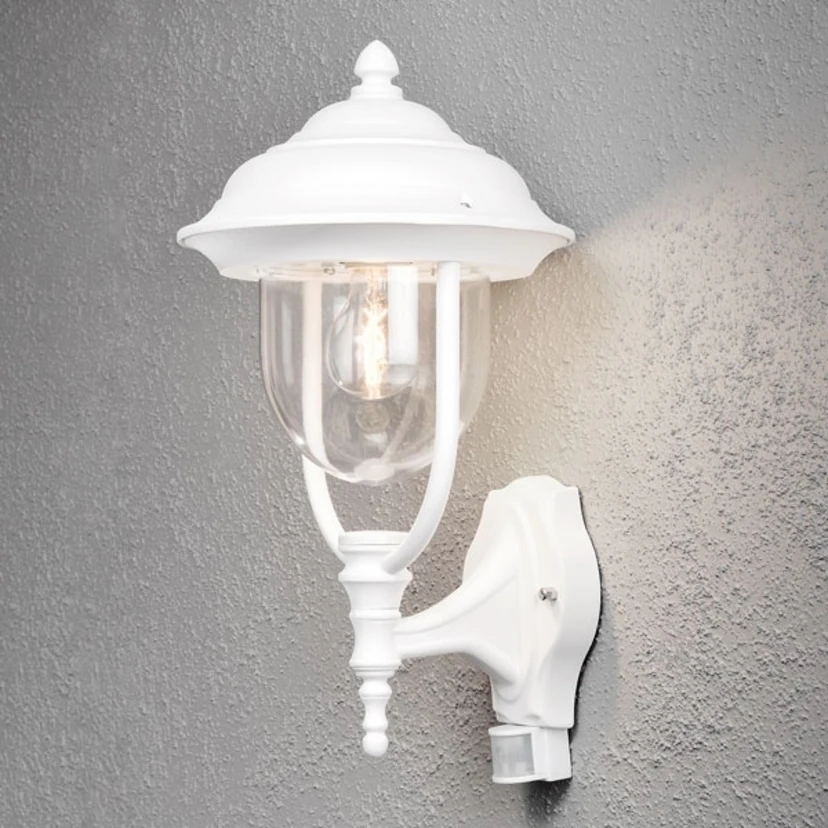Romantische buitenwandlamp Parma met praktische bewegingsmelder Parma is een klassieke buitenwandlamp van aluminium met helder acryl en een bewegingsmelder. Ze zorgt voor een efficiënte en veilige verlichting. De mooi gevormde kap en decoraties geven de lamp een licht nostalgisch effect. De bewegingsmelder heeft een bereik van 5 m en een detectiehoek van 140°. Die lichtduur kan worden ingesteld van 5 seconden tot 8 MINERS.