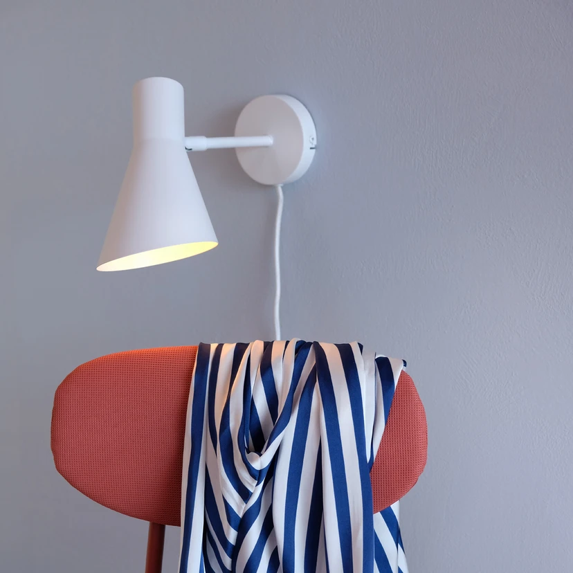 Wit gelakte wandlamp DL12 met draaibare en kantelbare kap De DL12-serie, die een klassieke uitdrukking uitstraalt, omvat ook een tafellamp en een vloerlamp die het verlichtingsconcept van een kamer compleet maken. De DL12 wandlamp van wit gelakt metaal is uitgerust met een draaibare en kantelbare kap waarmee de lichtrichting individueel kan worden vormgegeven. Het klassiek vormgegeven armatuur is afkomstig van Dyberg Larsen. Het licht kan eenvoudig worden in- of uitgeschakeld met de schakelaar die in de lampkop is geïntegreerd.