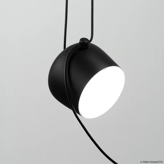 Met de creatie van de LED hanglamp Aim Small streefden de ontwerpers Ronan en Erwan Bouroullec het idee na van een hanglamp met talrijke variatiemogelijkheden. Aim Small ontstond in 2014 en is niet alleen up-to-date qua ontwerp, maar ook zeer flexibel qua installatie. De stroomvoerende kabel heeft een lengte van negen meter en Aim kan tot 3 meter hoog aan het plafond hangen. Bovendien is de armatuur uitgerust met een krachtige multichip LED die met zijn warmwitte licht voor een zeer sfeervolle omgevingsverlichting zorgt. Als voor de montage een meervoudige rozet wordt gebruikt, zoals kan worden besteld via de accessoires, kunnen maximaal vijf Aim-armaturen worden aangesloten.