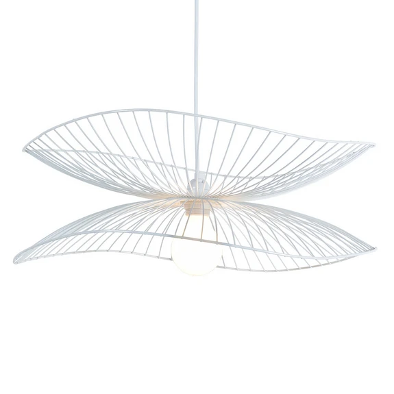 Libellule is een filigraan hanglamp met een kap van twee metalen ribben die rond de E27-fitting zijn bevestigd. De gebogen vorm van deze kap doet denken aan de vleugels van een libel en geeft de armatuur een zekere lichtheid. De metalen stangen zorgen voor een duidelijk zicht op de lichtbron en laten magische lichtmomenten toe uit het samenspel van licht en schaduw.