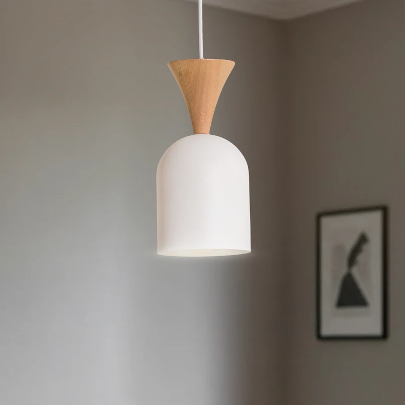Hanglamp Nolan, Ø 11 cm, wit/eiken, metaal/hout