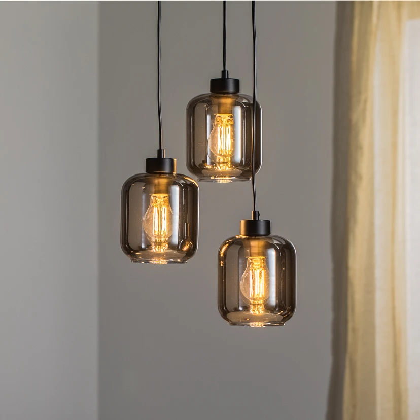 De hanglamp Sombra maakt indruk met zijn verfijnde ontwerp van hoogwaardig glas en metaal. De ronde constructie met 3 lampen in rookgrijs en zwart geeft elke ruimte een elegante uitstraling. Deze lamp is bijzonder geschikt voor woon- en eetkamers en creëert een uitnodigende sfeer die zowel gezelligheid als inspiratie bevordert.