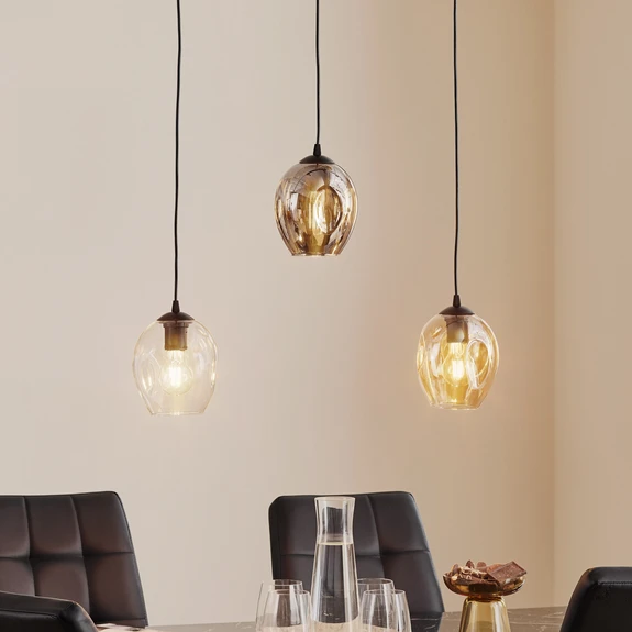 Hanglamp Starla recht 3-lamps grafiet/amber/helder