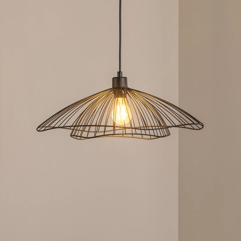 Deze hanglamp is meer dan alleen een lichtbron; het is een designelement dat de sfeer van een ruimte aanzienlijk beïnvloedt. Hoewel de lamp niet is uitgerust met een geïntegreerde dimmer, kan hij worden aangepast met een externe dimmer om de gewenste helderheid en sfeer te creëren.