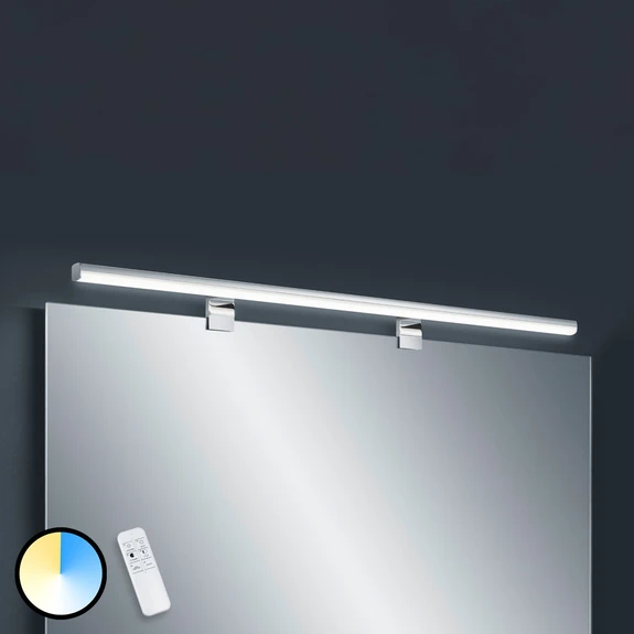 Glanzend verchroomde LED spiegel- en wandarmatuur Gaia inclusief afstandsbediening voor comfortabele instelling van lichttemperatuur en helderheid.