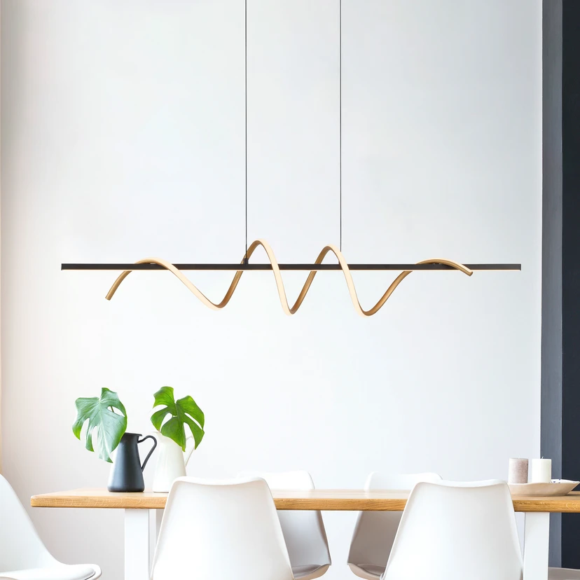 Emanda LED hanglamp, zwart en messingkleurig Emanda is een metalen LED hanglamp die er ook heel decoratief uitziet als ze is uitgeschakeld en bijzonder goed staat boven een lange eettafel. De lamp bestaat uit een rechthoekige baldakijn, een lange zwarte metalen staaf die eraan is afgehangen en een messingkleurige metalen spiraal die rond de zwarte staaf kronkelt. Zowel de rechte stang als de spiraal zijn aan één kant voorzien van een gesatineerde afdekking, waarachter warmwitte LED's zijn geïnstalleerd. Deze schijnen homogeen zonder zichtbare lichtpunten, waardoor een band of spiraal van licht ontstaat. Jonge en dynamische waarden kenmerken het merk JUST LIGHT. - voorheen bekend als Leuchten Direkt