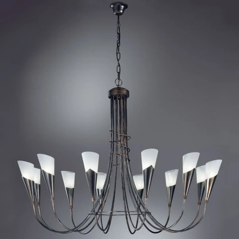 Kroonluchter CAMPAGNOLA, 12-lichts, zwart-koper