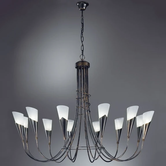 Imposante 12-lichts CAMPAGNOLA kroonluchter in modern designHet bewust eenvoudige ontwerp van deze imposante kroonluchter laat de edele keuze aan materialen en kleuren op een bijzondere manier tot zijn recht komen. De 12 witte scavo-glazen zorgen voor zacht, sfeervol licht. De ambachtelijke verwerking in Duits-Italiaanse ateliers garandeert de constant hoge kwaliteit van deze prachtige feestverlichting.