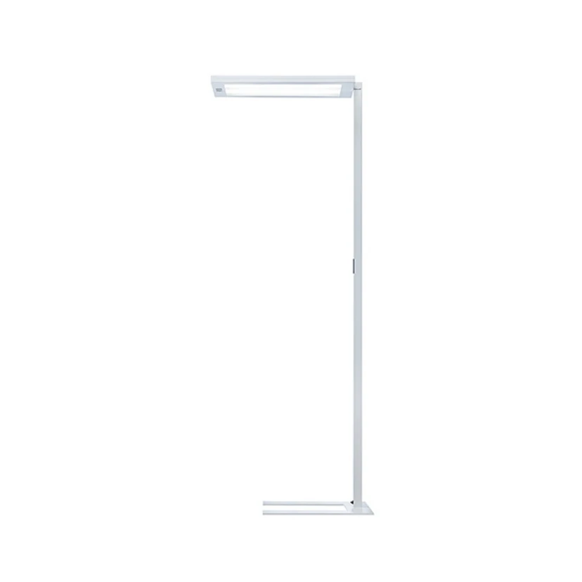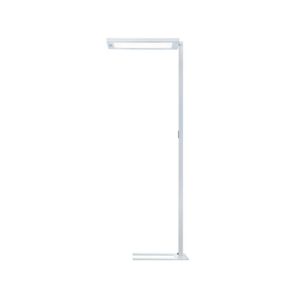 Lavigo DPS 16500/840/R/G2 - LED vloerlamp voor moderne kantoren Die hoogwaardige LED vloerlamp Lavigo is gemaakt van een gelakt stalen frame. De platte, C-vormige voet kan ook onder het bureau worden geschoven. Die krachtige LED vloerlamp zorgt voor niet-verblindende verlichting en is daarom ook geschikt voor gebruik op computerwerkplekken. Verblindingsbescherming wordt bereikt met een conische prismatische diffuser; Edgelight en Lightguide technologie zorgen voor een homogene lichtemissie van de directe component. Lavigo wordt echter vooral gebruikt als uplighter voor een ruime basisverlichting. De geïntegreerde bewegings- en daglichtsensor zorgt voor een automatische schakeling van het licht, waarbij de directe en indirecte lichtuitstraling elk apart kunnen worden ingesteld met de multifunctionele drukknop op het armatuurframe. - Verblindingsbescherming: UGR <= 10 - Lichtverdeling: 11% direct, 89% indirect