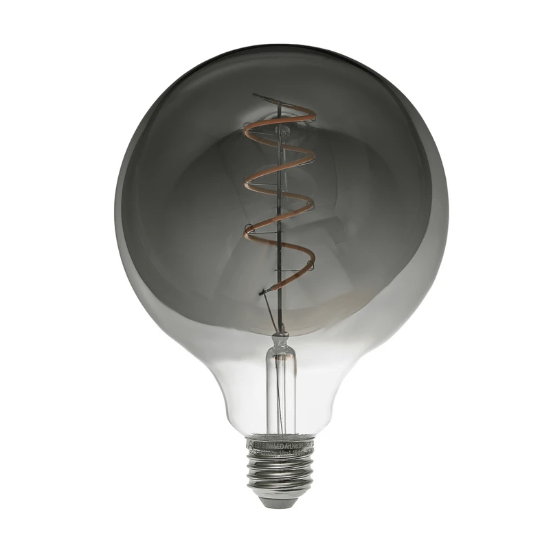 Rookgrijze LED globe lamp E27, 1.800 K, dimbaar, bijzonder goede kleurweergave Deze globe lamp met zijn G125 afmetingen is perfect voor open armaturen en creëert een sfeervolle ambiance met zijn bijzonder warmwitte lichtkleur en de rookgrijze tint van het glas. De gloeidraad LED lamp is dimbaar en heeft een zeer goede kleurweergave. Technische gegevens: - extra warm licht (1.800 K) - dimbaar - bolvorm G125 - zeer goede kleurweergave-index, CRI > 90
