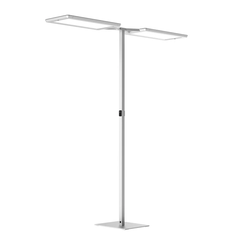 Yara.double LED kantoor vloerlamp met twee apart regelbare lichtbronnen en instelbare lichtkleur Die Yara.double LED vloerlamp voor directe verlichting op een dubbele werkplek en genereert ook sfeerverlichting. Beide panelen kunnen onafhankelijk van elkaar worden bediend. Die armatuur met zijn heldere, moderne ontwerp heeft praktische functies. De lichtopbrengst kan worden geregeld, de lichtkleur kan worden aangepast van warmwit tot daglicht, de PIR-sensor detecteert beweging en de omgevingshelderheid. Dankzij de ingebouwde TALK Bluetooth-module is integratie in de Light Admin App mogelijk. Hierdoor kunnen alle armaturen in een gebouw worden toegewezen aan specifieke gebieden of groepen. Zodra een sensor een aanwezigheid detecteert, wordt dit signaal doorgegeven aan de omliggende armaturen om het licht van al deze armaturen te harmoniseren (zwermregeling). Met de Light User App kunnen individuele gebruikers de armatuur direct op hun werkplek bedienen; dit kan ook via de magnetische, verplaatsbare bedieningseenheid op de STAND. De VTL-technologie biedt nog meer toegevoegde waarde. Hiermee regelt Yara.double de verlichting in functie van het dagverloop en de omgevingshelderheid, passend bij het menselijk bioritme - UGR-waarde <= 10 - voorschakelapparaat: elektronisch voorschakelapparaat (Dali) - PIR bewegings- en daglichtsensor - App bediening; TALK Bluetooth (zwermregeling) - rechthoekige voet - asymmetrische emissie - flikkervrij - magnetische stuureenheden - VTL - biodynamisch licht