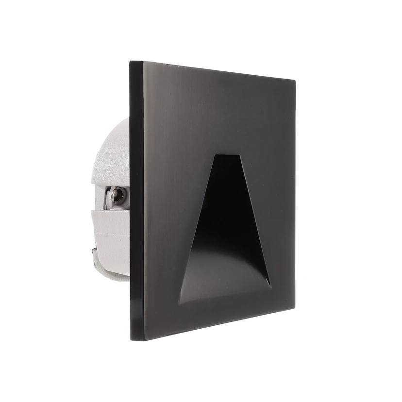 LED wand inbouwlamp SET Alwaid, hoekige lens met hoekige lichtuitstraling - voor 68 mm schakeldozen De LED wand inbouwlamp SET Alwaid is ideaal voor accent- en oriëntatieverlichting in gangen, kelders en trappenhuizen. Ze is ontworpen voor installatie in 68 mm schakelaardozen met een normaal en diep ontwerp. De SET Alwaid inbouwlamp is gemaakt van aluminium en voorzien van een vierkante afdekking met een schuine lichtuitstraling (trapeziumvormig taps toelopend aan de bovenkant).