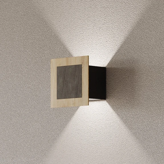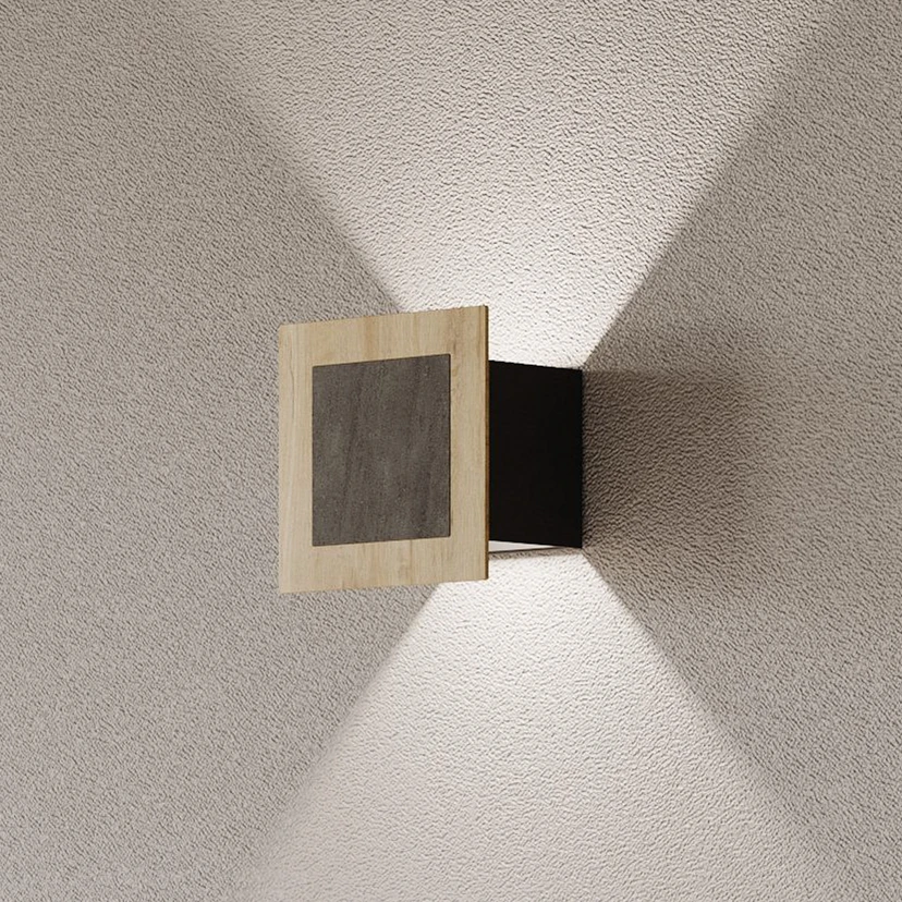 LED wandlamp Chile S, eiken/graniet, hoogte 15 cm, dimbaar