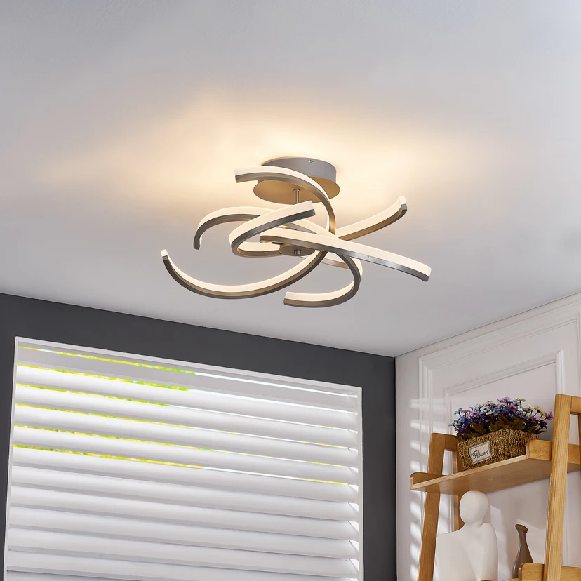 Gebogen LED plafondlamp Divalis met stepdimfunctieDe gevormde LED plafondlamp Divalis combineert functionele verlichting met een aantrekkelijk design. De plafondlamp straalt sfeervol warm wit uit in uw woonruimte. Het biedt de mogelijkheid om de lichtsterkte te regelen volgens uw stemming door middel van een lichtschakelaar en slaat een uitstekend figuur met zijn moderne design. Het model Divalis wordt geleverd in de kleur nikkel en vindt een plaats in uw eetkamer, woonkamer of hal. Kies voor uitstekende kwaliteit van het merk Lindby met deze plafondlamp. De lamp straalt een prachtige sfeer uit.