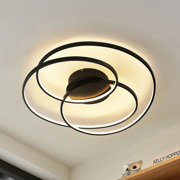 Lindby LED plafondlamp Kateryna, zwart, Ø 60 cm, dimbaar
