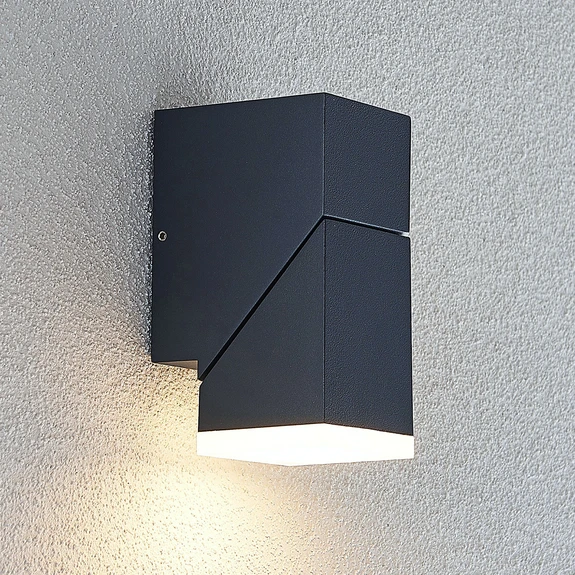 Sally verstelbare LED buiten wandlamp met donkergrijs oppervlak en lineair ontwerp Sally is zo goed beschermd met een beschermingsgraad van IP54 dat ze zonder aarzelen buiten kan worden geïnstalleerd. De buitenwandlamp wordt ook verlicht met energiebesparende LED's die zeer efficiënt zijn. Een bijzonder HighLight is de wendbaarheid van de hoekige lampenkop, waardoor de lichtrichting naar wens kan worden gevarieerd. Het donkergrijze oppervlak en het zeer strakke uiterlijk zorgen voor een moderne, eigentijdse look.