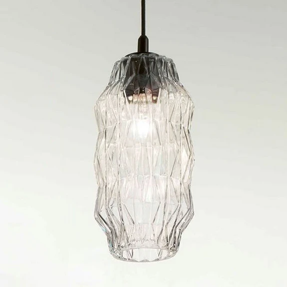 Het ontwerp van deze glazen pendelarmatuur, geproduceerd in Italië, is geïnspireerd op de elegante, gestileerde lijnen van de Art Nouveau, die zijn omgezet in een gedrukte vorm. De geblazen glasschaduw inspireert niet alleen qua vorm, maar krijgt ook een bijzondere toets door de glaskleur. De transparantie van het glas zorgt er ook voor dat het licht in alle richtingen uitstraalt en de ingewerkte lijnen zorgen voor unieke reflecties in de omgeving door de breking van het licht.
