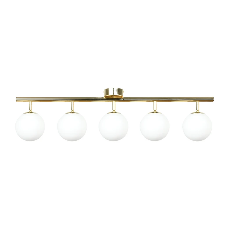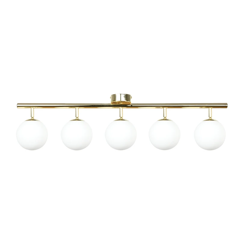Plafondlamp Drum, goudkleurig, glas, lengte 80 cm, 5-lamps