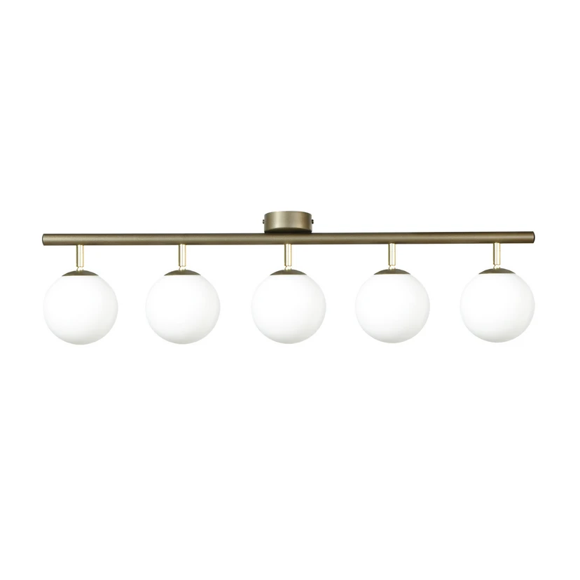 De plafondlamp Drum van metaal en glas combineert stijlvolle materialen met een functioneel ontwerp. Met zijn vijf lampen zorgt hij voor een gelijkmatige en aangename verlichting in verschillende woonruimtes, waaronder de eetkamer, keuken, woonkamer, slaapkamer en hal. De kleurencombinatie van koffiebruin metaal en opaalwit glas geeft de lamp een tijdloze elegantie die naadloos in verschillende interieurstijlen kan worden geïntegreerd.
