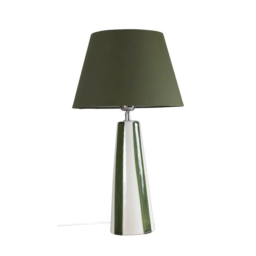 Tafellamp Leya met gestreepte, handgeschilderde keramische voet