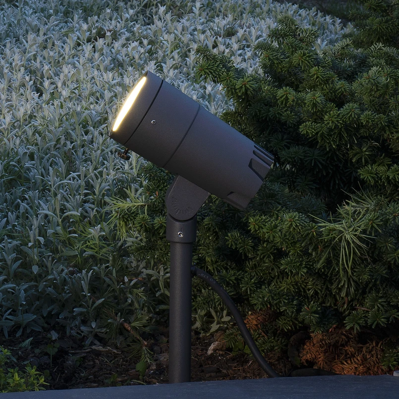 Andria LED grondspot met instelbare zoom Met de Andria LED grondspot kun je overal op het terrein verlichting op maat creëren. De antracietkleurige buitenspot is uitgerust met een 5 m lange steekkabel en wordt eenvoudig in de grond geplaatst. De spot is uitgerust met een instelbare zoom voor dichtbij en veraf (18°-60°), zodat zowel de gevel als specifieke delen van het pand in het juiste licht kunnen worden gezet. Met beschermingsgraad IP54 is hij aan alle kanten optimaal beschermd tegen stof of spatwater