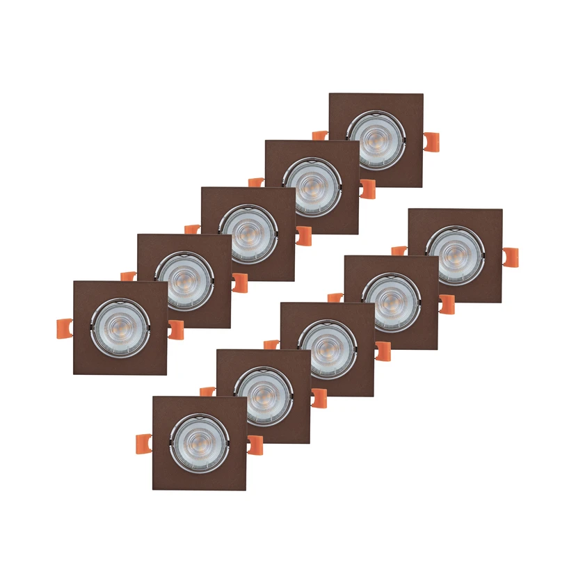 PRIOS inbouwlamp Fibur, mat brons, 9 cm, GU10, 10 stuks