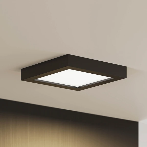 Vierkante LED plafondlamp Alette met CCT en dimmerfunctie, IP44 De LED plafondlamp Alette is gemaakt van aluminium en kunststof. De hoekige behuizing is versierd met een zwart oppervlak en heeft een opvallende en moderne uitstraling. Het ontwerp kan worden geïntegreerd in verschillende interieurs en ziet er zeer stijlvol uit. De helderheid van deze lamp kan individueel worden aangepast met een externe dimmer (fasevoorloopregeling). Er is ook een DIP-schakelaar op de behuizing waarmee de lichtkleur vooraf in verschillende stappen kan worden aangepast (3.000 K, 4.000 K en 6.000 K). De lamp heeft ook een beschermingsgraad IP44, wat betekent dat de lamp ook in een badkamer kan worden gebruikt. Het is geschikt voor gebruik in zowel de particuliere als commerciële sector. Technische gegevens: - Dimbaar (fasevoorlopende regeling) - CCT-functie via DIP-schakelaar: 3.000 K / 4.000 K / 6.000 K - IP44 beschermingsgraad - 120° stralingshoek