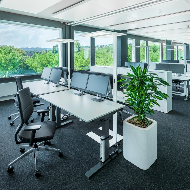De tweelamps Lightpad LED vloerlamp is gemaakt van wit gelakt aluminium en heeft een U-vormige voet. Met MINERGIE® modules gecertificeerd door de fabrikant Regent en een UGR<;19 is het de ideale keuze voor efficiënte taakverlichting. Er zijn twee bewegingsmelders en twee SensoDim® daglichtsensoren geïnstalleerd.