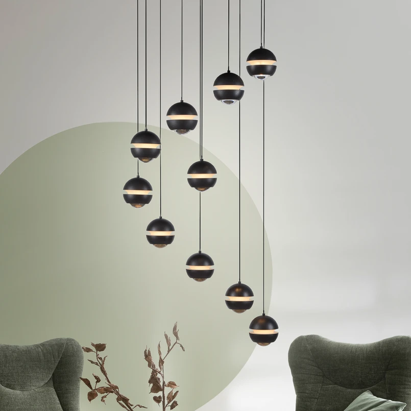 SCHÖNER WOHNEN LED hanglamp Lini zwart 10-lamps rond 3000K