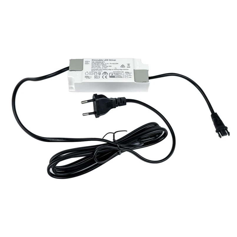 SLC LED driver dimbaar 450 mA max. 18 W - dimbaar via fase-afsnijdimmer - primair 200 - 240 V - secundair 30 - 40 V 450 mA - met 2 m aansluitkabel met Eurostekker