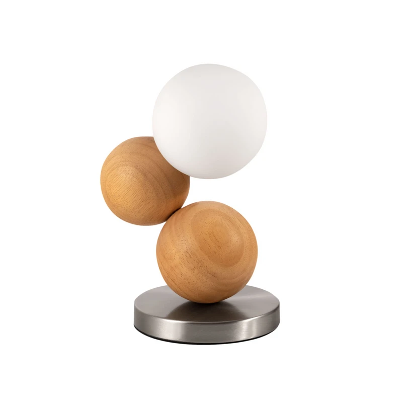 Tafellamp Micky, hout licht/nikkel, hout, dimbaar, G9