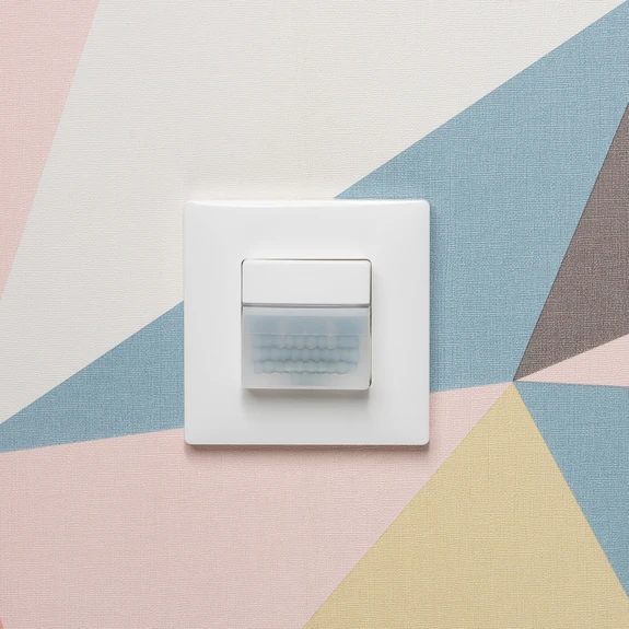 De passieve infraroodbewegingsmelder is ideaal voor automatische verlichtingsregeling op basis van beweging en lichtsterkte. De geïntegreerde drukknop kan worden gedeactiveerd.