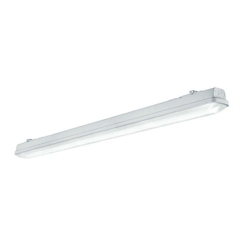 Aquaforce Pro LED vochtbestendige lamp - helder en robuust Waar gewerkt moet worden, moeten spaanders worden gemaakt - en Aquaforce Pro is daar geen partij voor. De stof- en waterdichte diffusorarmatuur zorgt met zijn krachtige LED's betrouwbaar voor oriëntatie en veiligheid in werkruimten, opslagruimten, gangen en buitenruimten. De opalen diffusor, die in de ruimte is gericht, en de witte behuizing van polycarbonaat vormen samen een druppelrand, waardoor vuil zich niet kan ophopen. Aquaforce Pro kan horizontaal en verticaal op Decks en muren worden gemonteerd. Die hiervoor meegeleverde snelbevestigingen en de ongecompliceerde klikbevestiging van de diffuser maken een tijdbesparende installatie mogelijk - Lichtverdeling: 93 % naar beneden, 7 % naar boven - Tolerantie op kleurlocatie (initiële MacAdam): 3 - Beschermingsgraad: IP66 - Slagvastheid: IK08 - Omgevingstemperatuur: - 20 tot + 35 °C - Doorvoerbedrading: met H05VV kabel of NYM kabel