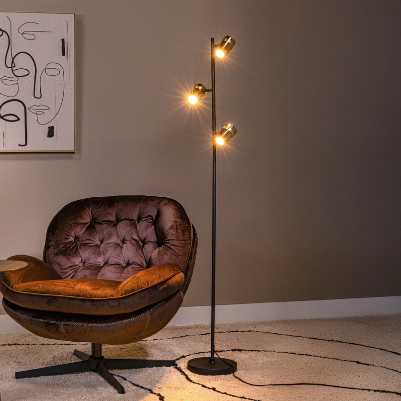 Vloerlamp Upton met drie draaibare en kantelbare spots