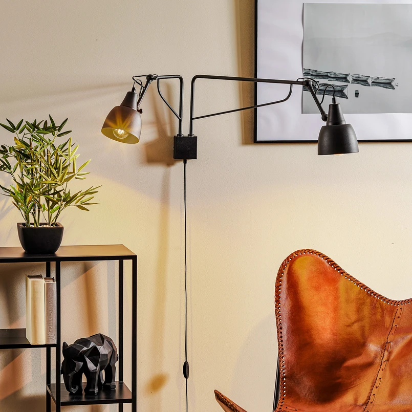 Wandlamp 1002 met stekker, 2-lamps, zwart