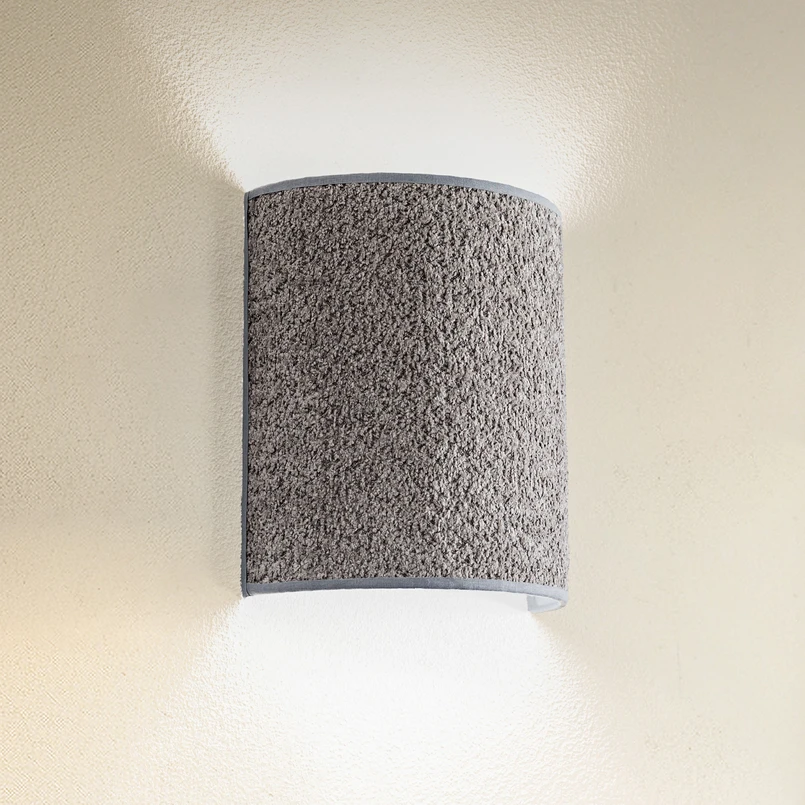 De wandlamp Boucle van stof combineert hoogwaardige materialen en Europees vakmanschap tot een elegant verlichtingselement. Gemaakt van bouclé en metaal, straalt hij een tijdloze esthetiek uit die harmonieus in woon- en slaapkamers past. De grijze kleur geeft de lamp een subtiele verfijning die gemakkelijk te combineren is met verschillende interieurstijlen.