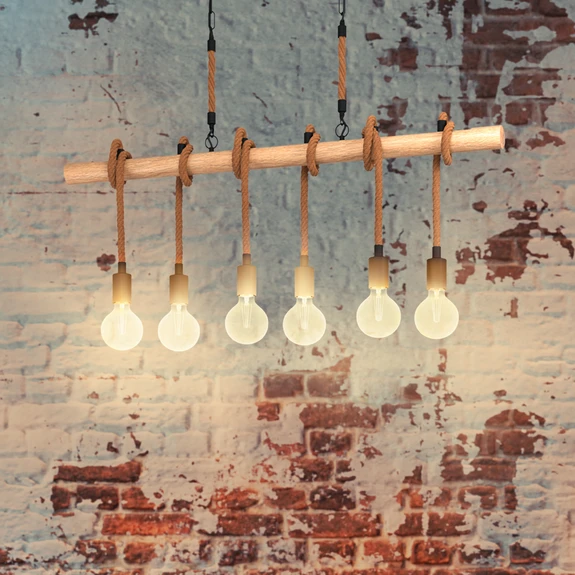 Youngstown hanglamp, lengte 100 cm, zwart/bruin, 6-lamps. Levertijd: 9 - 13 werkdagen